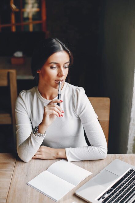 Working at her laptop
